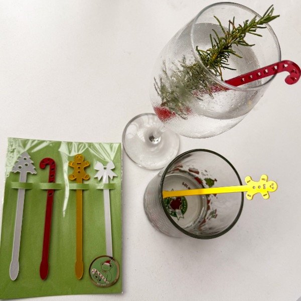 Pack de 4 revolvedores de acrílico de 13cm, cada uno con motivos navideños diferentes:
