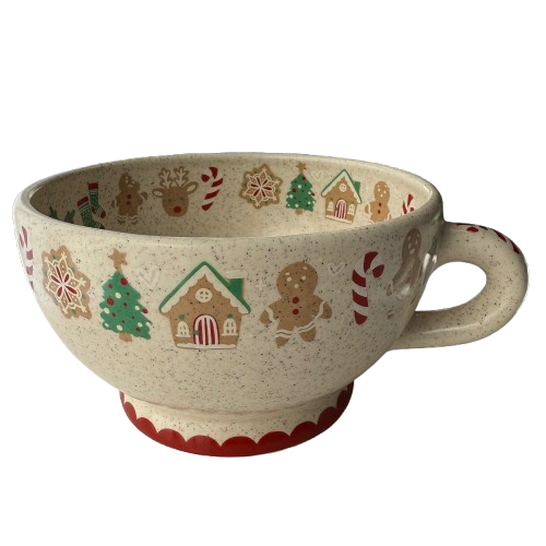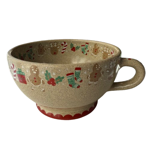 ☕Taza de cerámica jaspeada con motivos navideños. Disponible en 2 colores.