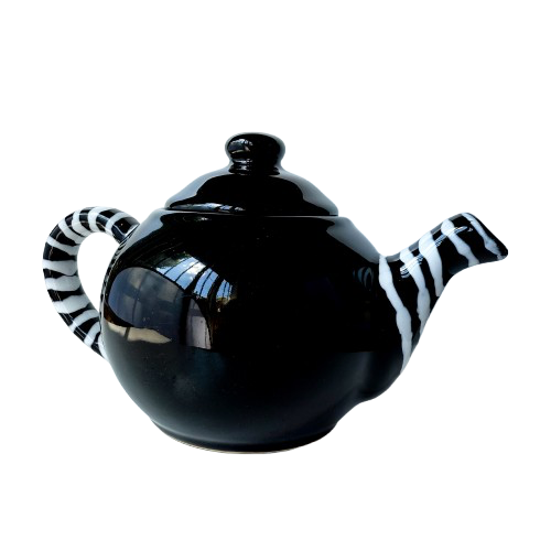 Tetera de cerámica con filtro de malla metálica para el té en hebras.